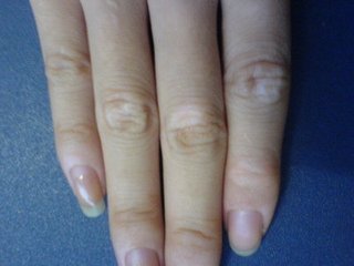 在此病的发病初期,患者的白斑通常为指甲或钱币大,而且近圆形或不规则形,也有患者会出现点状色斑,而且色斑境界,边缘还可能绕以色素带,这是此时白斑主要的症状特点。